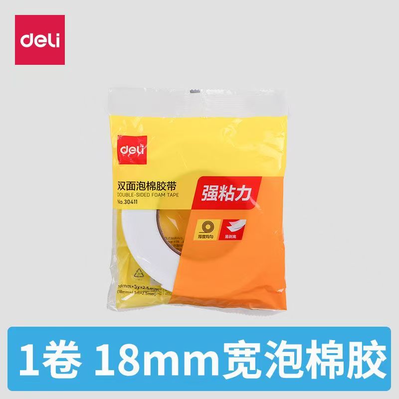 得力/deli 30411 胶带 泡棉双面胶带 18mm*2.5mm*5y